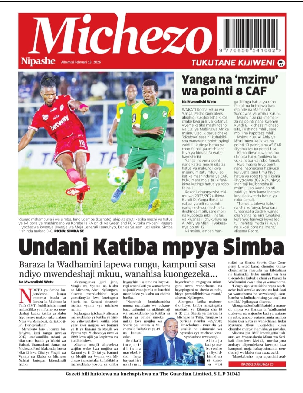 Homemagazetini PITIA KURASA ZA MAGAZETI YA LEO ALHAMISI FEBRUARI 19, 2026 February 18, 2026 0 Je?, UNA HABARI,PICHA, TANGAZO AU TAARIFA AMBAYO UNGEPENDA TUICHAPISHE KATIKA MTANDAO HUU? WASILIANA NASI, Email : fichuziblog@gmail.com , Simu +255 752 925 603